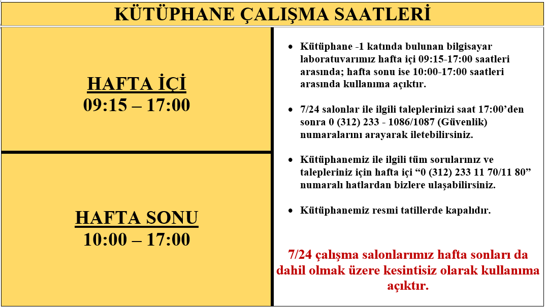 Kütüphane Çalışma Saatleri