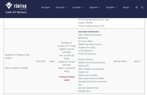 TÜBİTAK ULAKBİM tarafından yürütülen EKUAL Projesi kapsamında, Springer Nature yayınevine ait 2.300’den fazla elektronik dergiye erişim sağlanmaktadır. Bir erişim (Read) anlaşması olan mevcut 2022-2024 Springer Nature anlaşması, 2024-2026 dönemini kapsayacak şekilde 1 Ocak 2024 tarihinden itibaren “Oku & Yayımla” (Read & Publish) modeline dönüştürülmüştür.